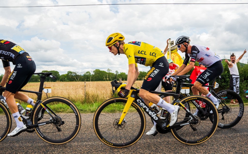 Stage 19 was a classic breakaway stage. Rolling hills, a twisty parcours, it was almost certain a break would get away in this ride from Moirans en Montagne to Poligny. What we didn’t expect was for the initial breakaway group to be composed of exactly the same riders as Stage 18. Kasper Asgren (yesterday’s winner) took it to the line with Matej Mohoric in thrilling finish. At the end, Mohoric was declared winner, but that wasn’t the story of the day.